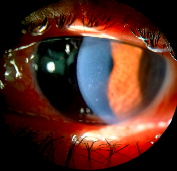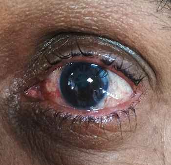examination showed edematous lids, circumcorneal